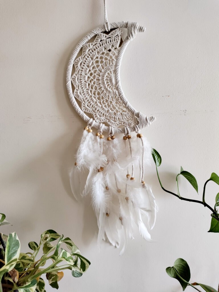 If you prefer a modern boho style, choose a minimalist macramé dreamcatcher. Neutral shades like white, beige, or cream create a clean and elegant look.