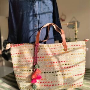 Material | Jacquard Fabric, Leather straps and Wool Tassel |